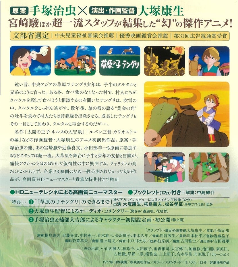 広大な中央アジアの草原を舞台に、仔牛と少年の友情の物語を、草原の情緒や生活をまじえながら描くアニメーション。